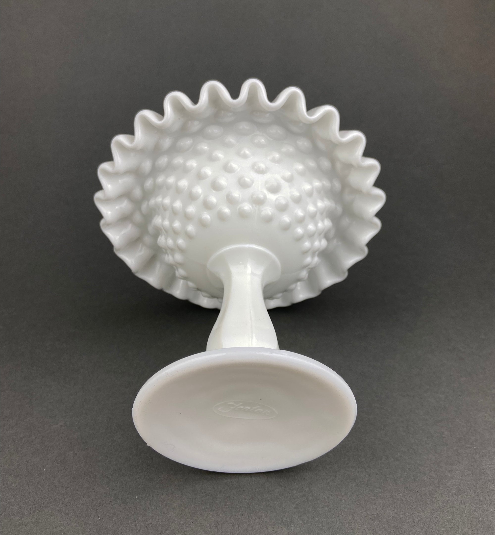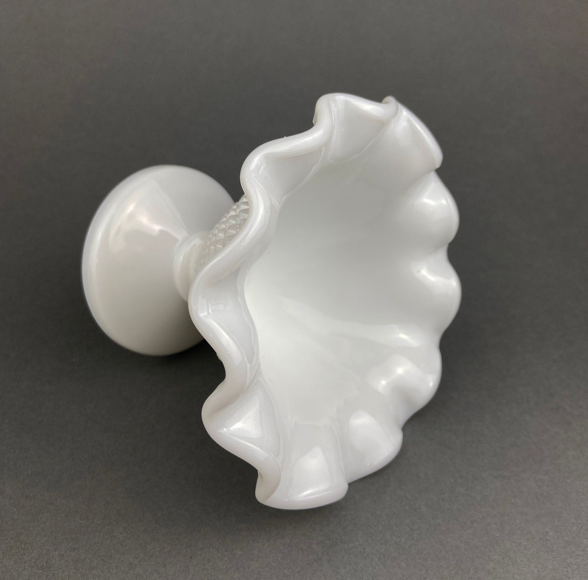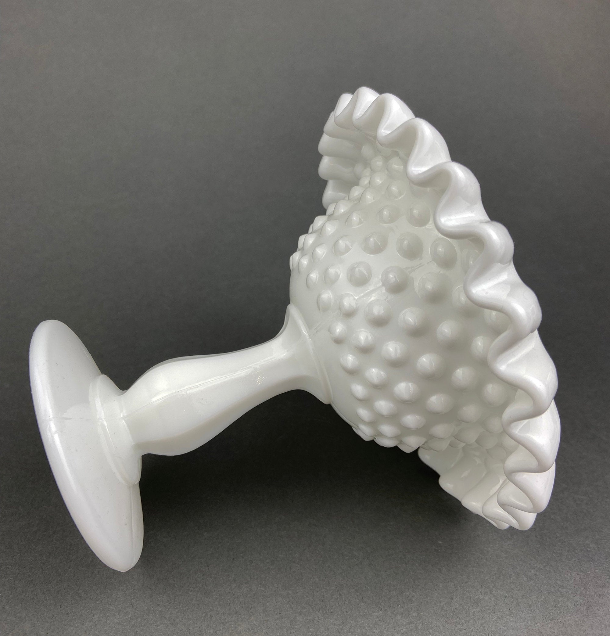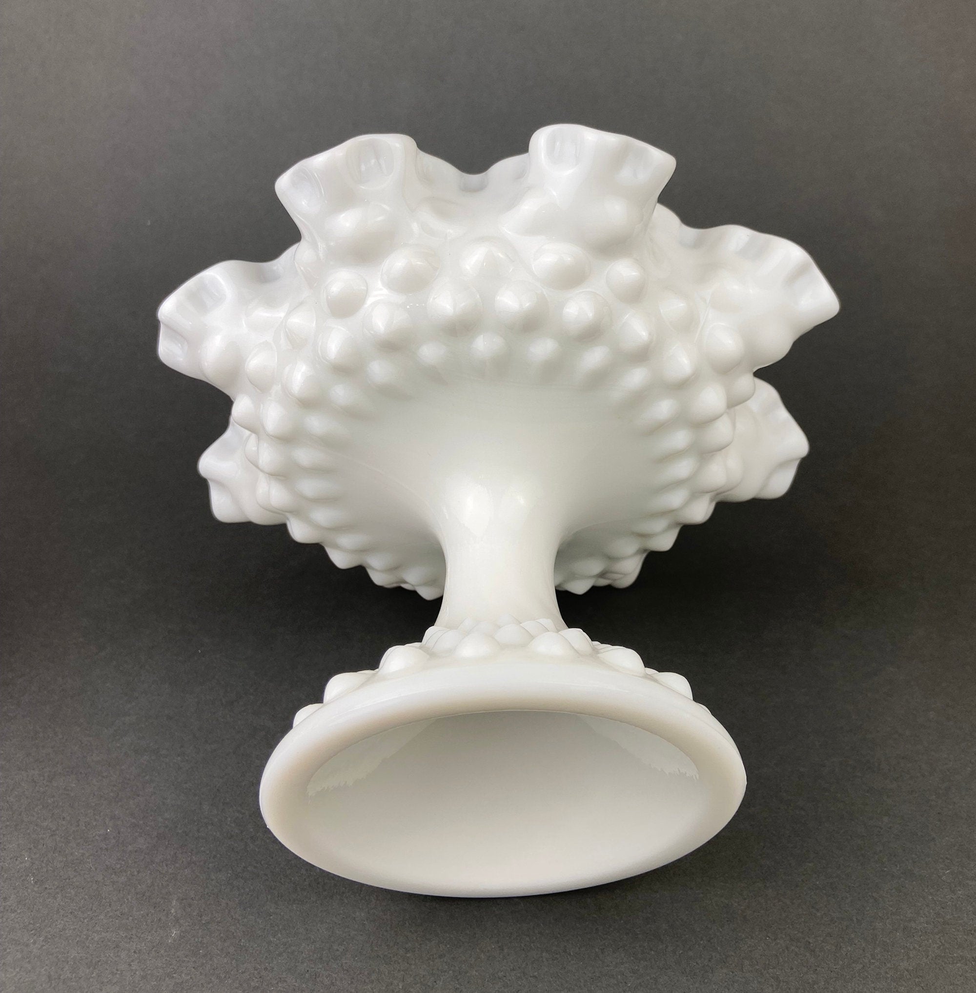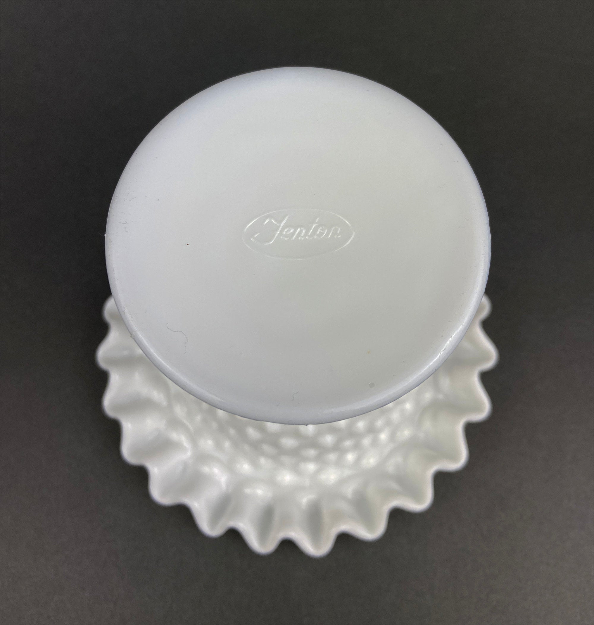 Vintage Fenton Hobnail Milk Glass Candy Ruffled Trinket Bowl