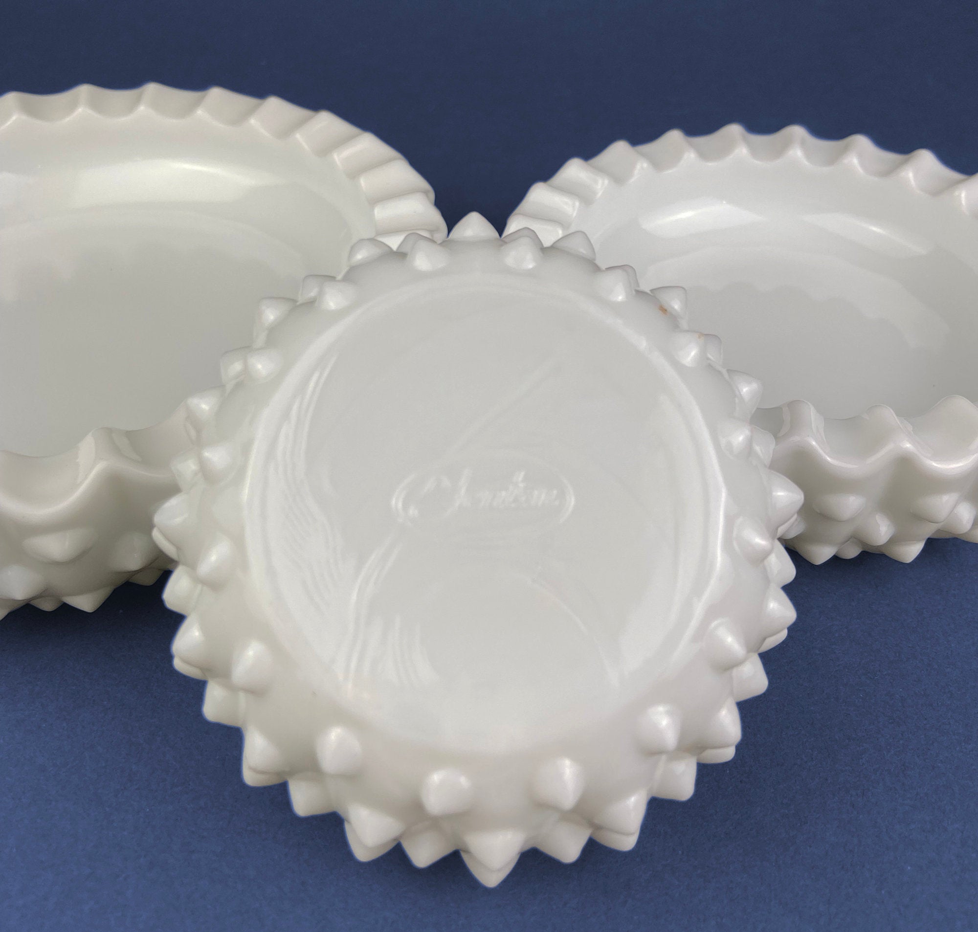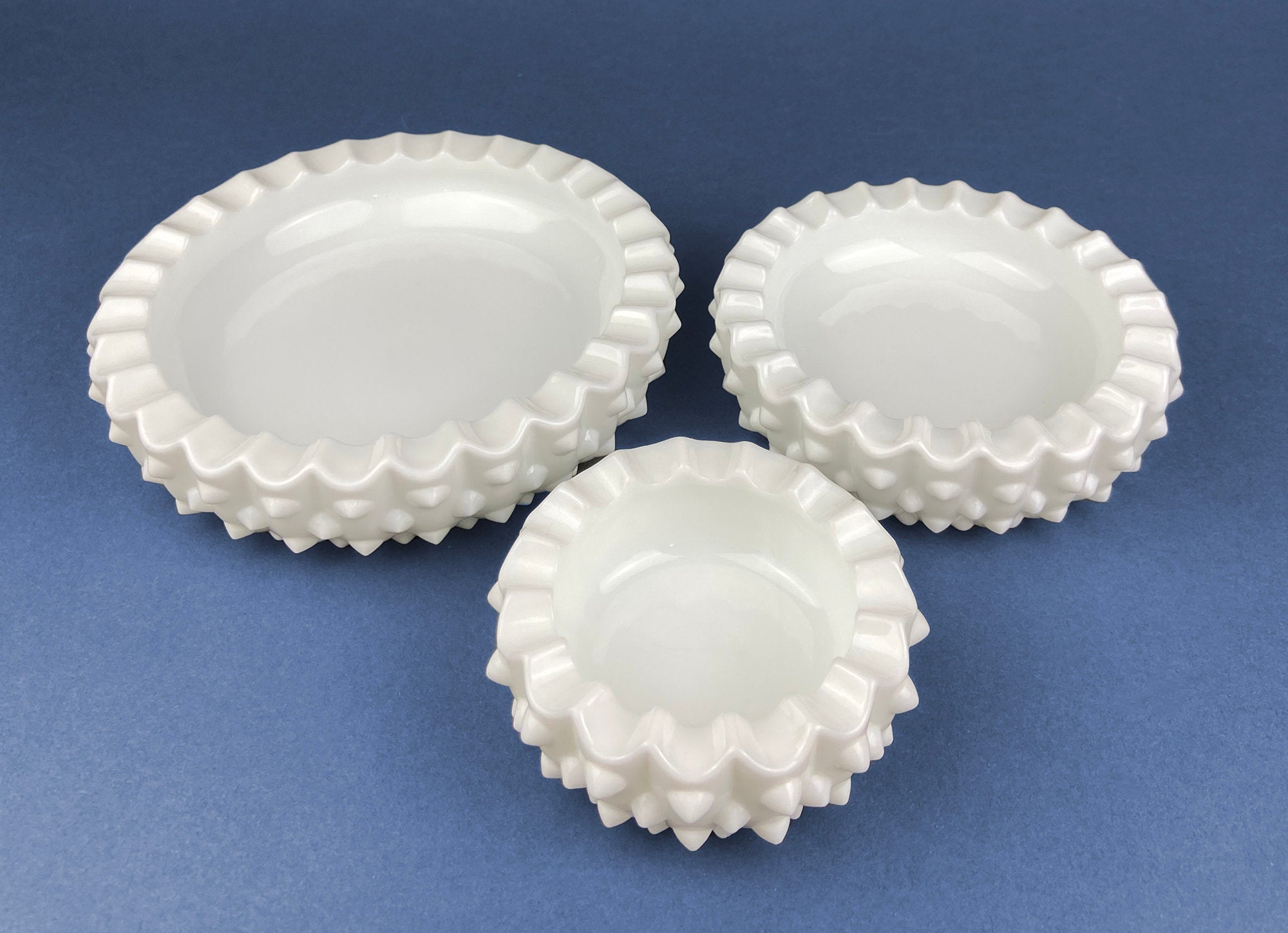 Vintage Fenton Milk Glass Nesting Ashtrays. Hobnail Ashtrays or Bowls with Scalloped Edge. Set of Three. Gift for Him. Largest:1.5"... Read More