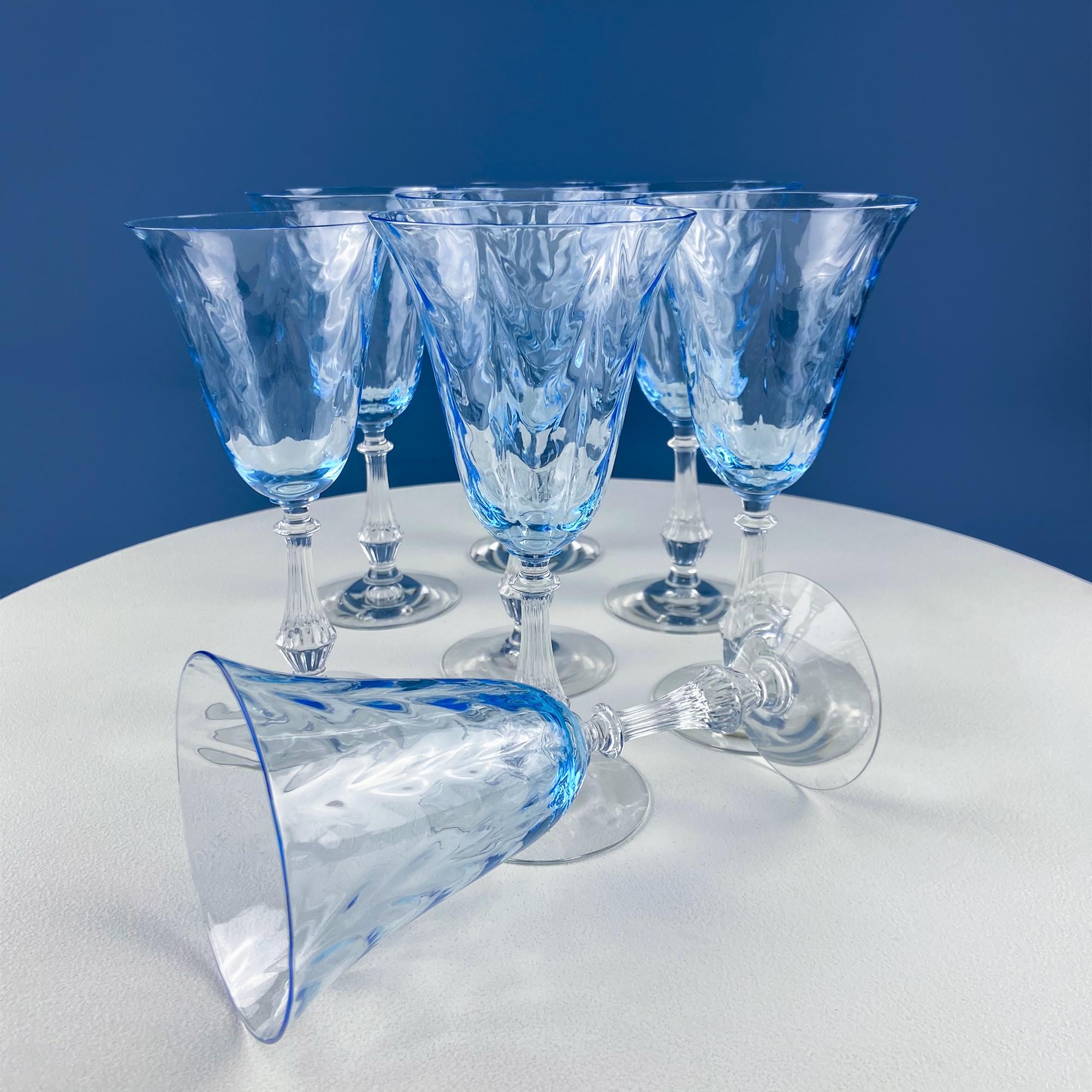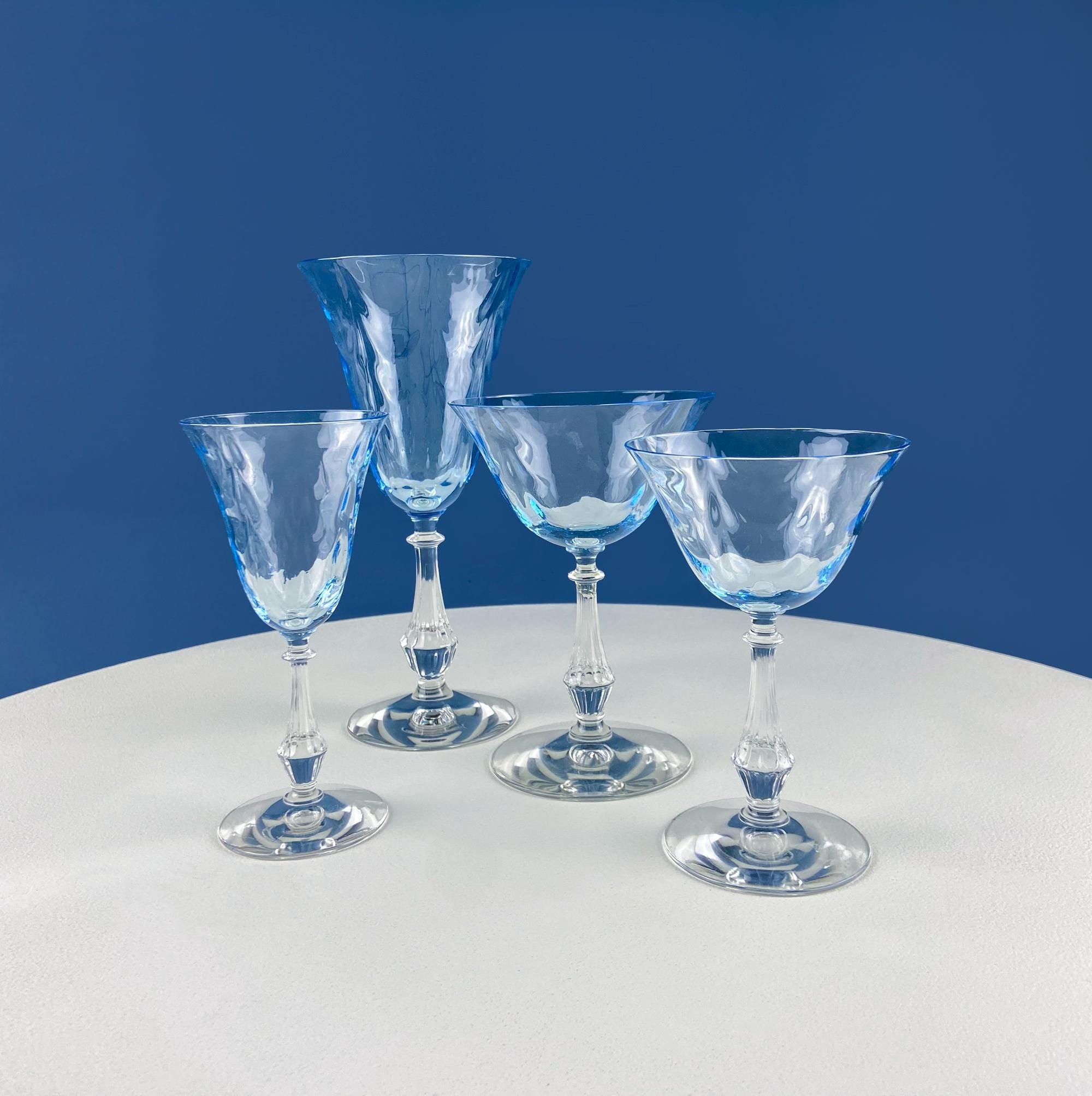 Vintage Fostoria Champagne Crystal Goblets. Moonlight Blue Wavecrest. Set of 10. Dining Room Table Decor. Collectible Glassware. Excellent Condition. Wedding... Read More