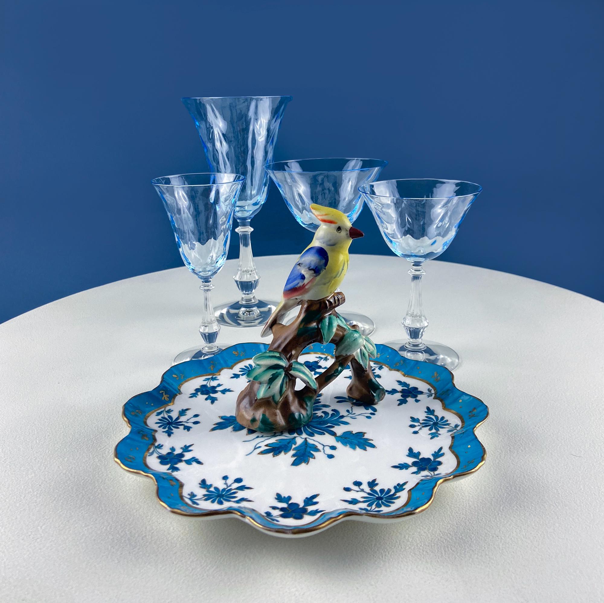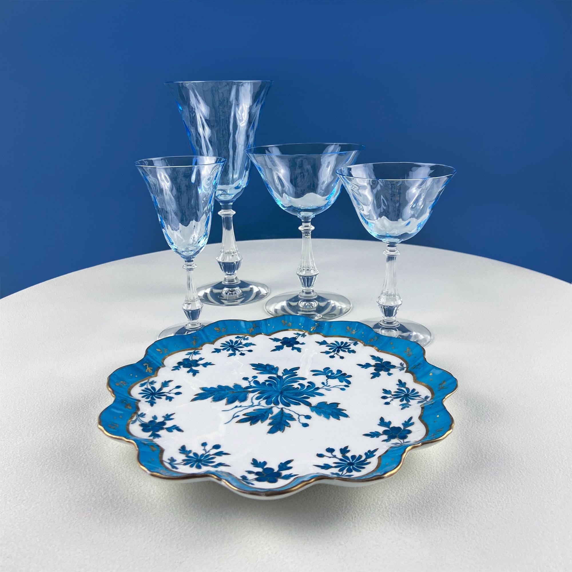Vintage Fostoria Wine Water Crystal Goblets. Moonlight Blue Wavecrest. Set of 12. Dining Room Table Decor. Collectible Glassware. Excellent Condition.... Read More