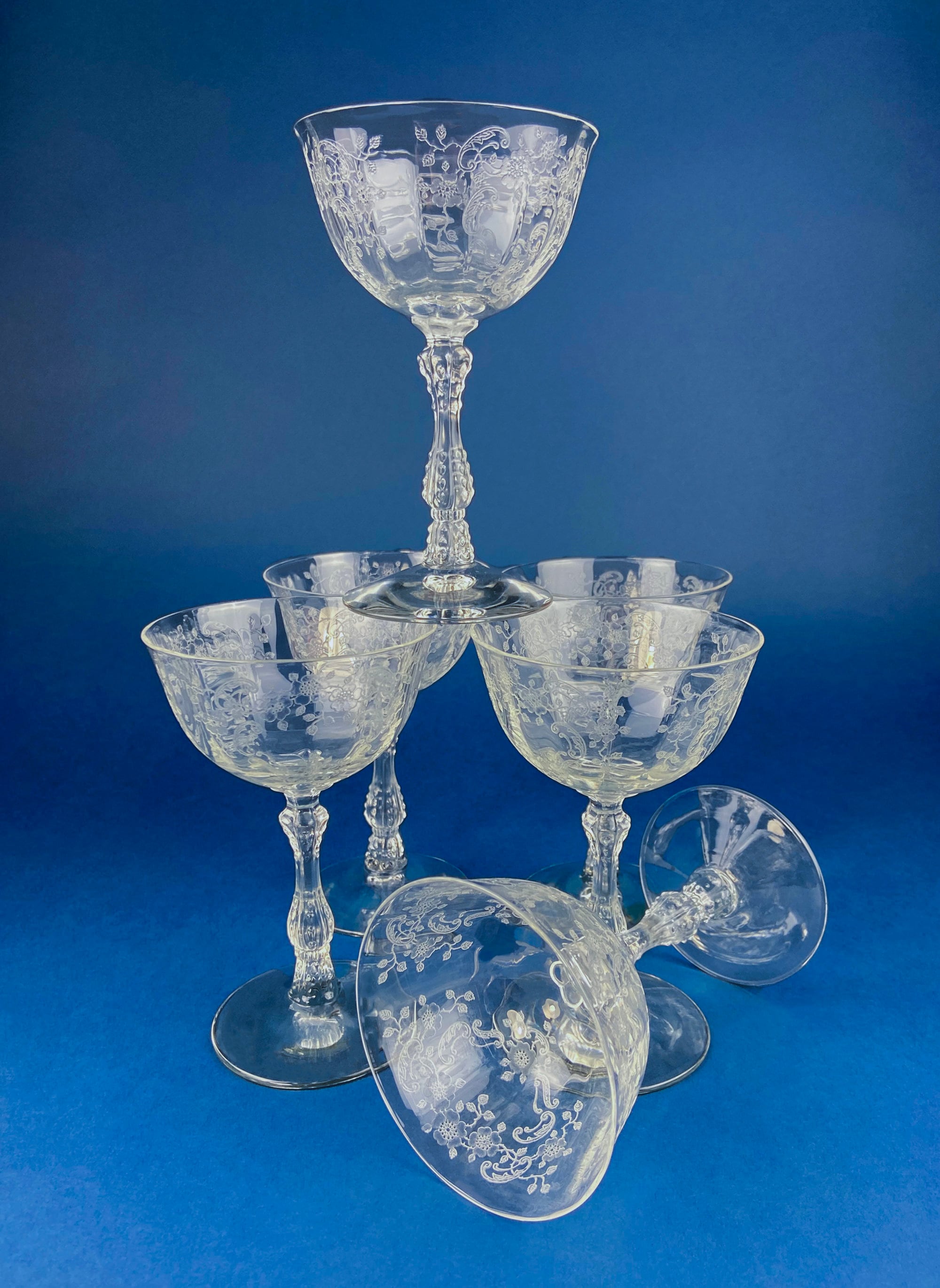 Vintage 1940s Heisey Danish Princess Cut Crystal Stemmed Tumblers. Set of 7 Glasses. Beautiful Shimmer & Ping. Wedding Gift. Housewarming.... Read More