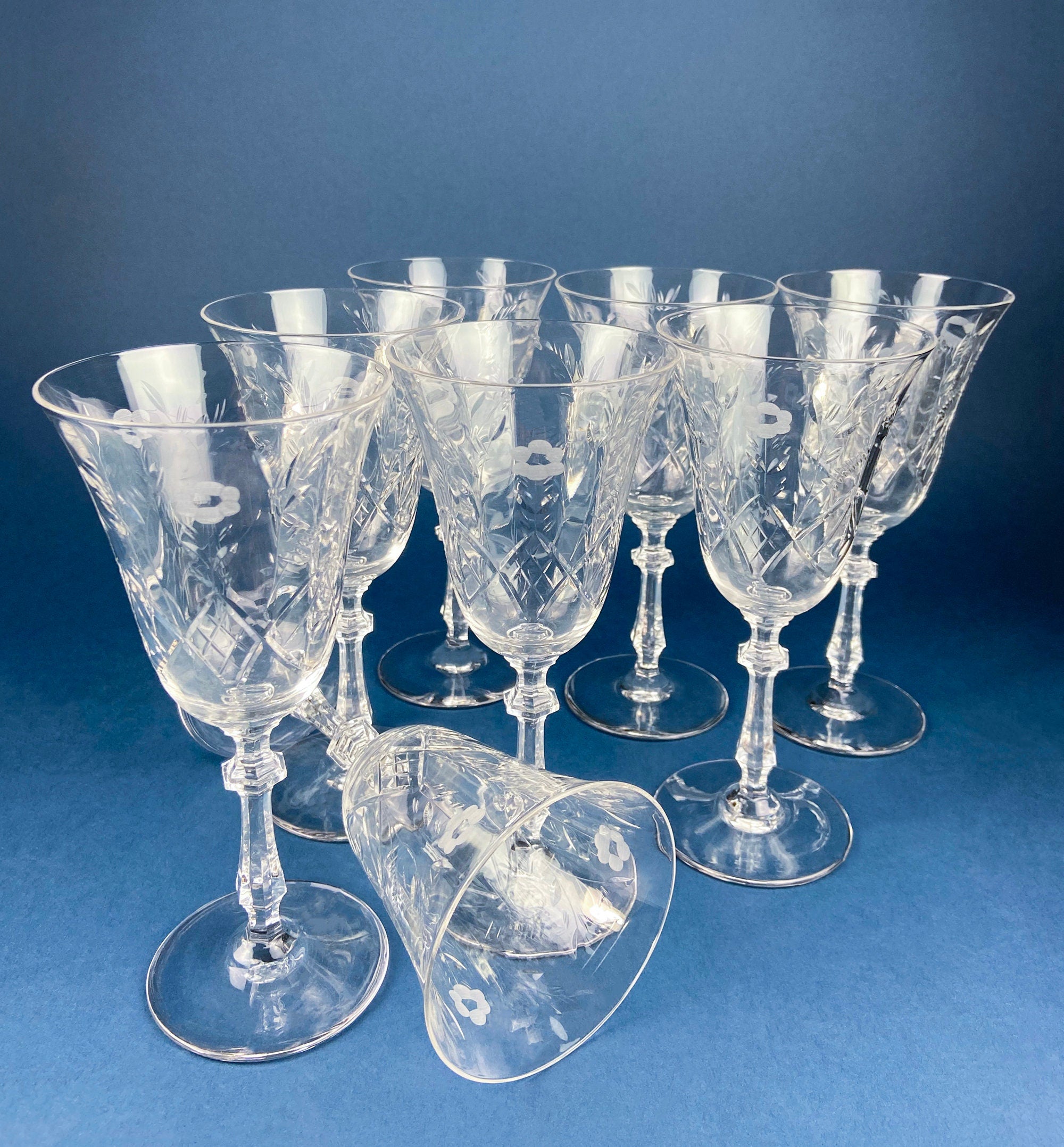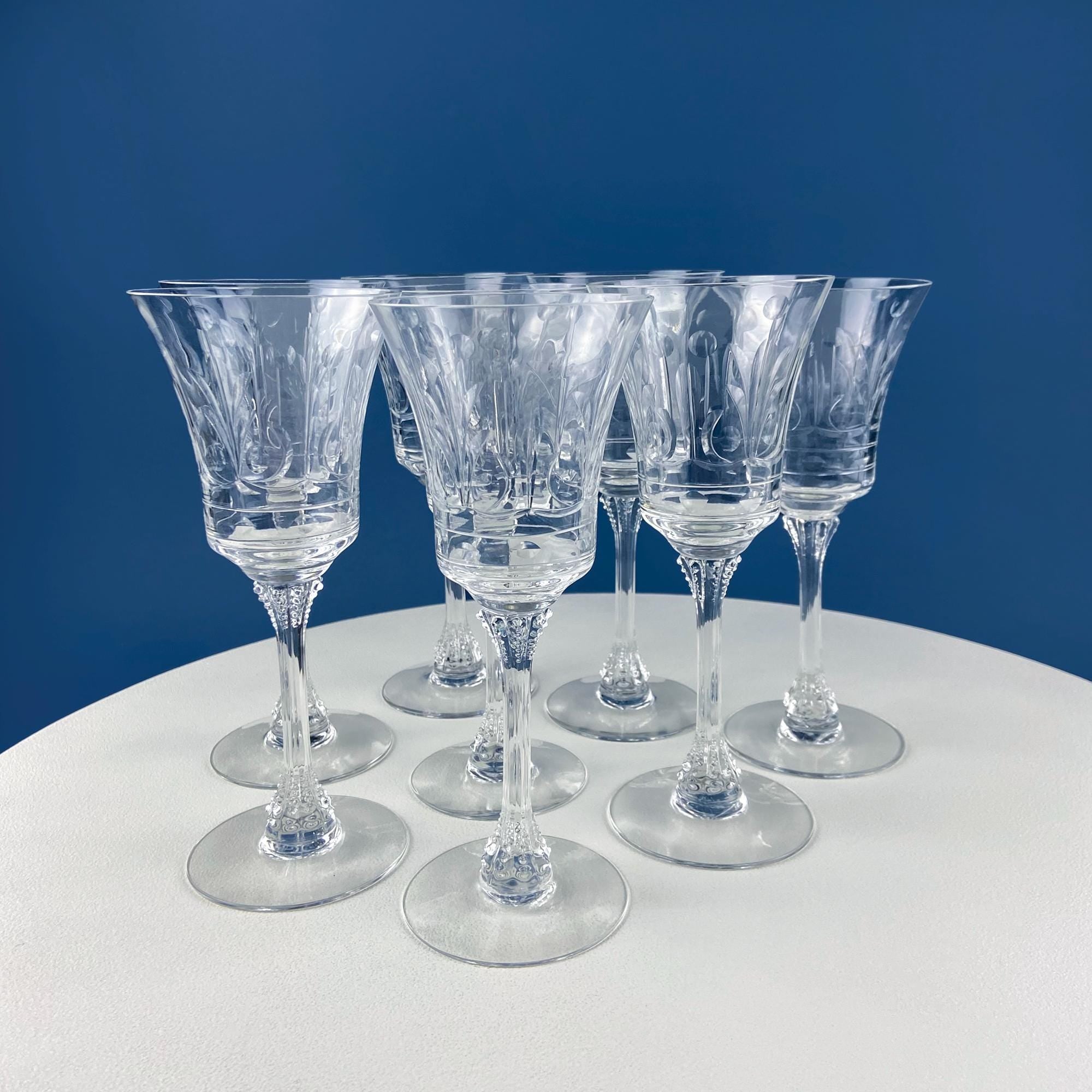 Vintage 1940s Heisey Danish Princess Cut Crystal Stemmed Tumblers. Set of 7 Glasses. Beautiful Shimmer & Ping. Wedding Gift. Housewarming. Dining Room, Table Decor. Holiday Celebration or Everyday Enjoyment. Excellent Condition.