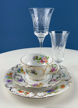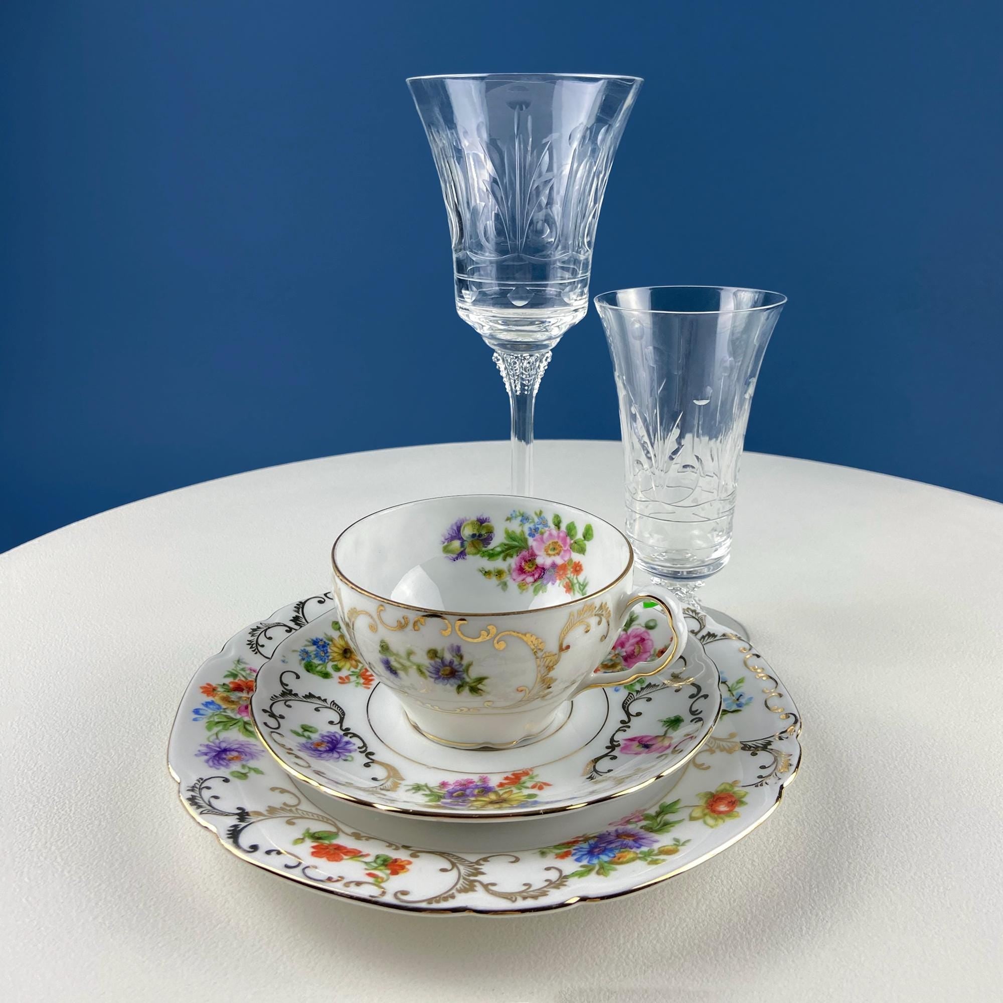 Vintage Heisey Danish Princess Cut Crystal Stemmed Tumblers. Set of 7 Glasses. Wedding Gift. Housewarming. Dining Room Table Decor.