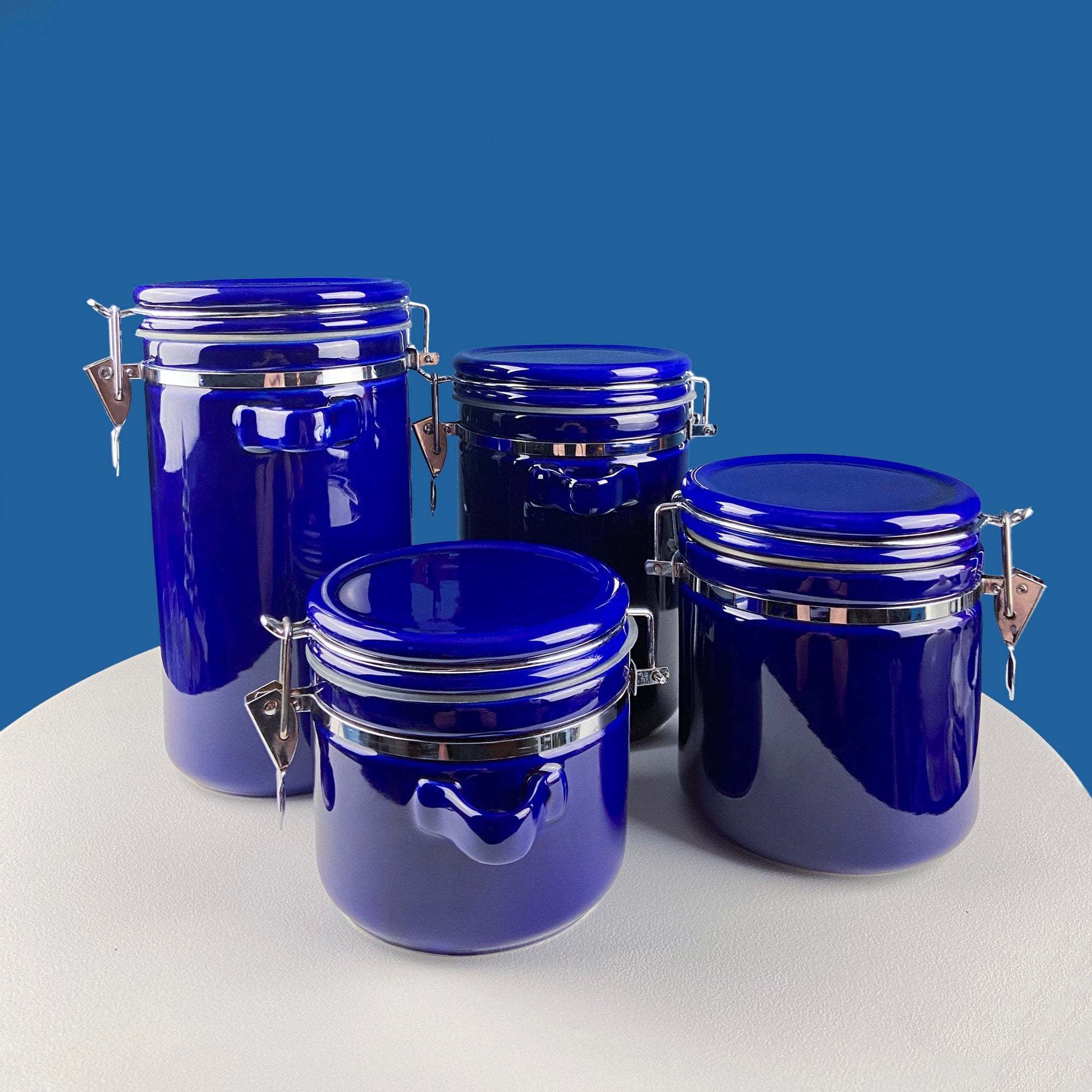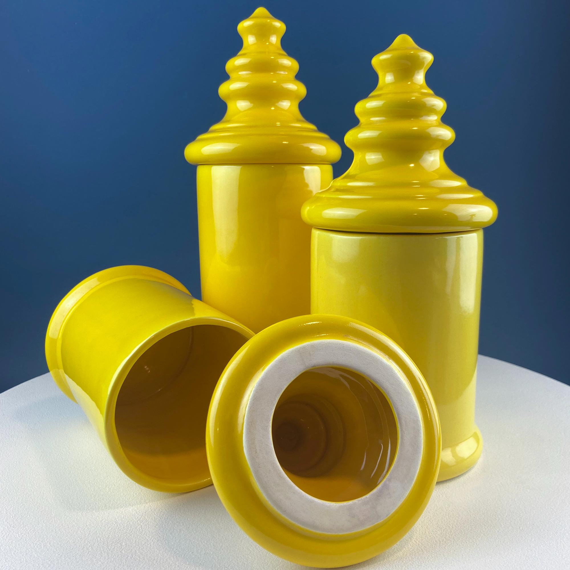 Vintage Mid Century Modern Yellow Ceramic Lantern Shaped Canisters with Lids. Set of 3. Kitchen Dining Rm Decor. Modern Farmhouse.