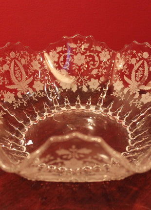 Vintage New Martinsville Tall Sherbet Champagne Glasses. Set of 7 Prelude Etched Stemware. Highly Collectible Barware. Wedding Registry.