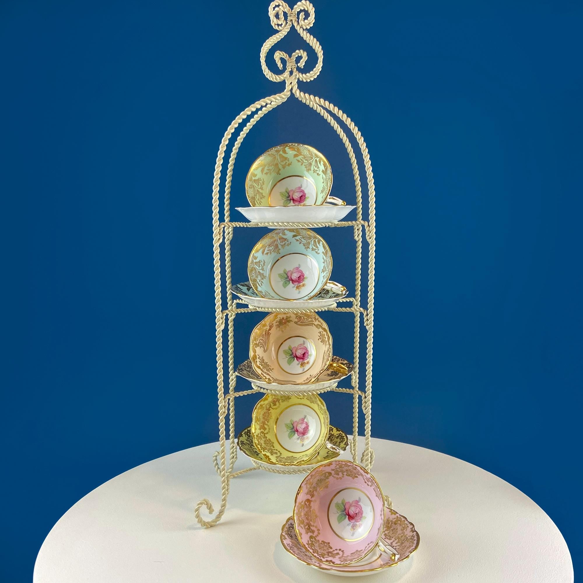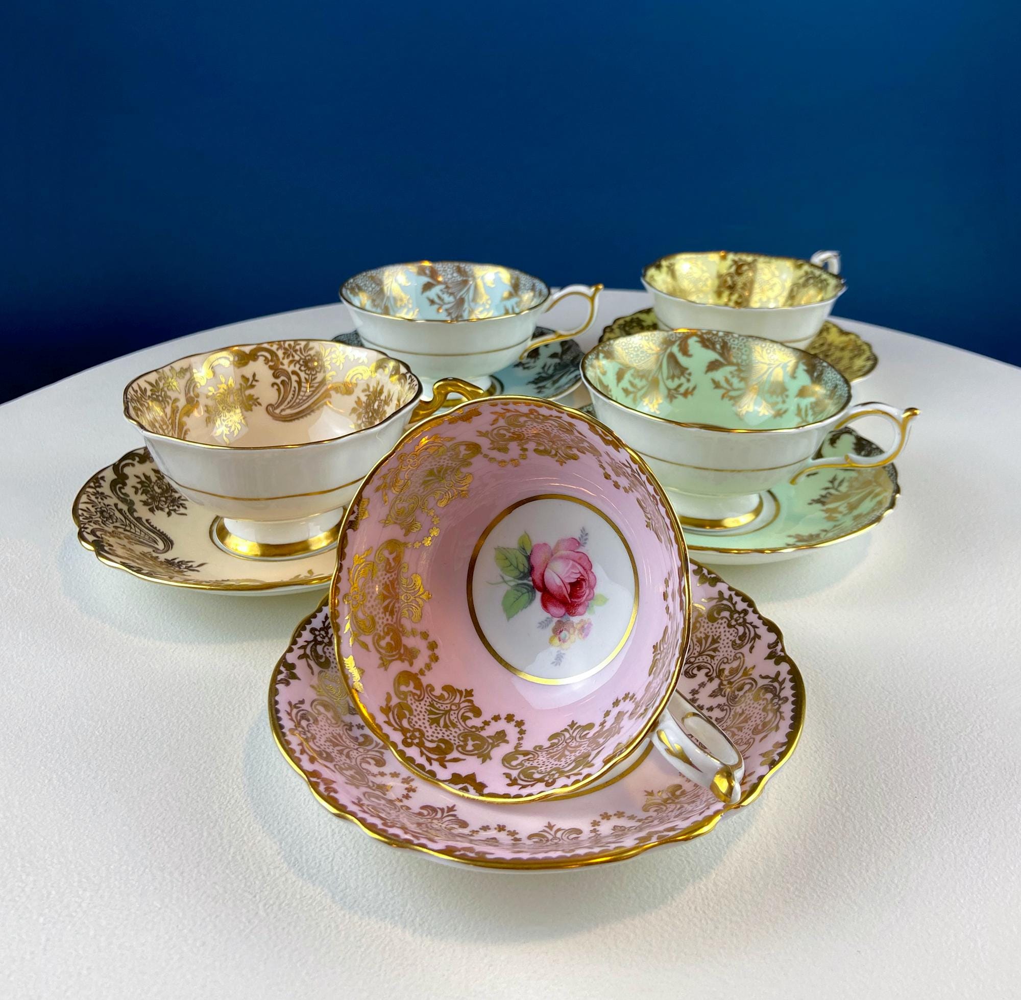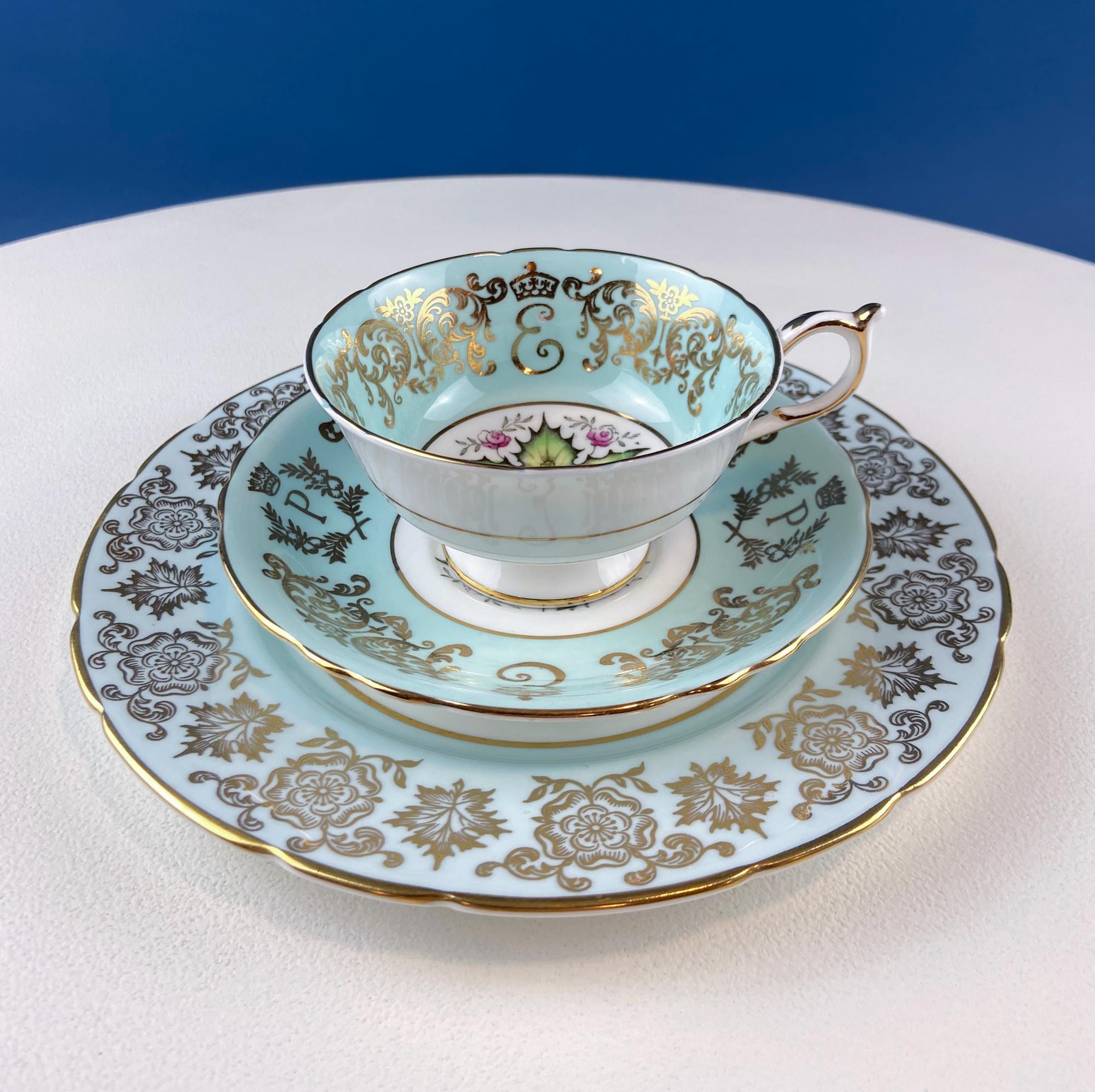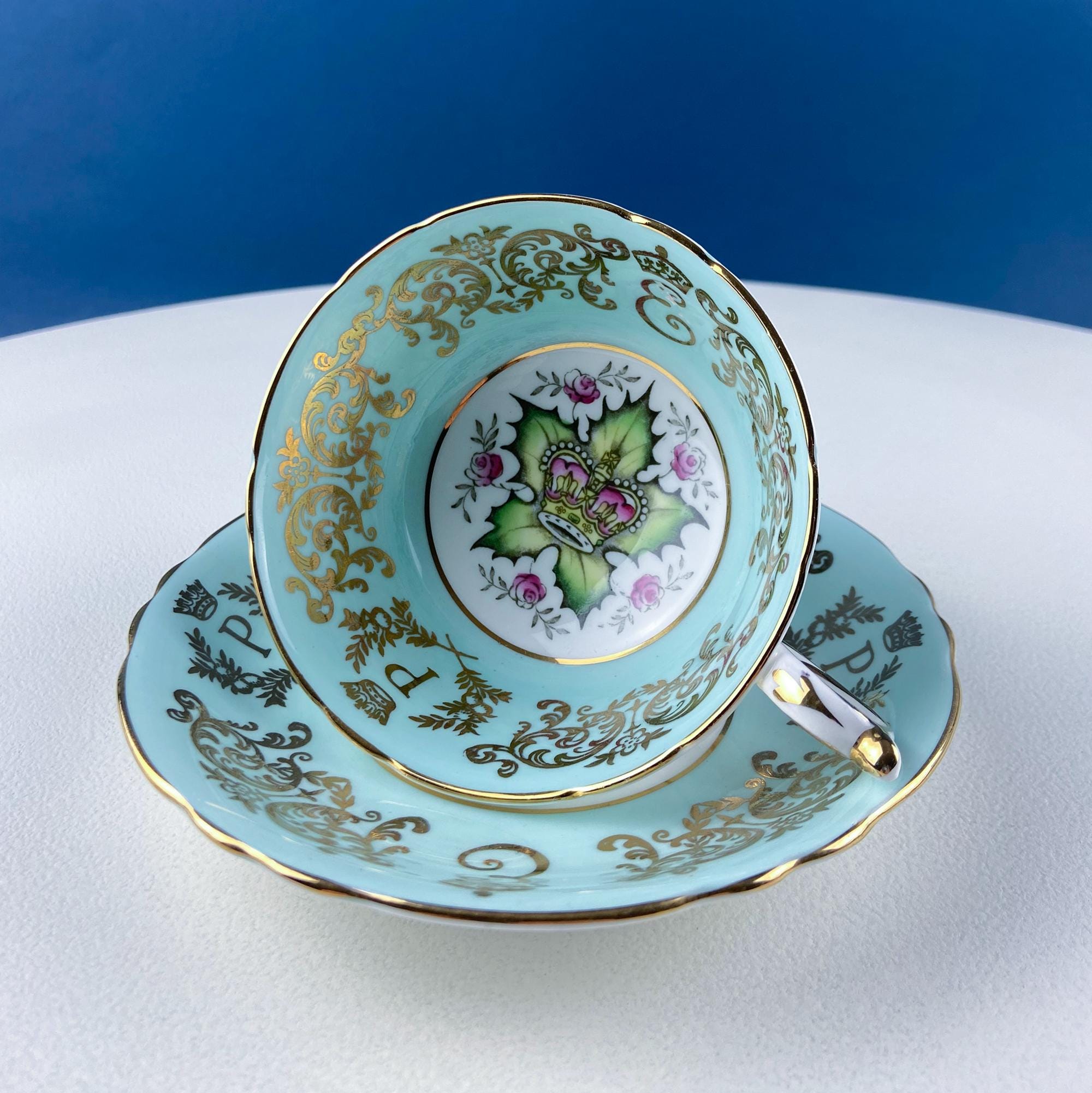 Vintage Paragon Tea Cup and Saucer. Blue with Gold Motifs. Hand Painted Flowers. Dining Room Decor. Tea Garden Party. Hosting Essentials.