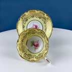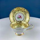 Vintage Paragon Yellow Tea Coffee Cup & Saucer. Red Rose Motif and Gold Floral Border. Collectible Dining Room Decor. Gift for Him Her.