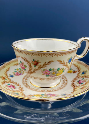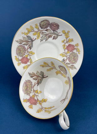 Wedgewood Tea or Coffee Cup with Saucer. Vintage Sophisticated, Fine Bone China with Flower Motif. Made in England. Gift for him or Her.