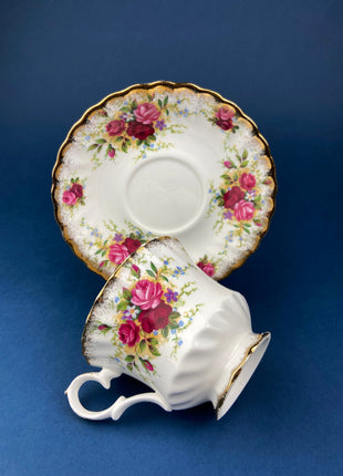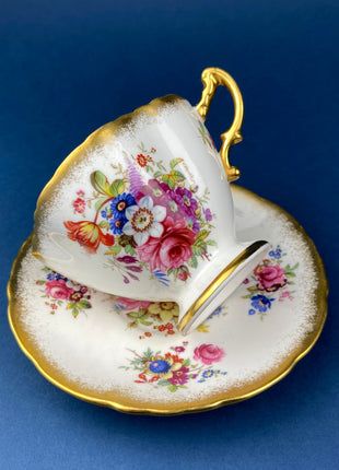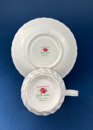 Vintage Queen Anne Bone China Porcelain Tea Cup and Saucer. Summer Days Design. Tea Party Hosting Essentials. Collectible Set.