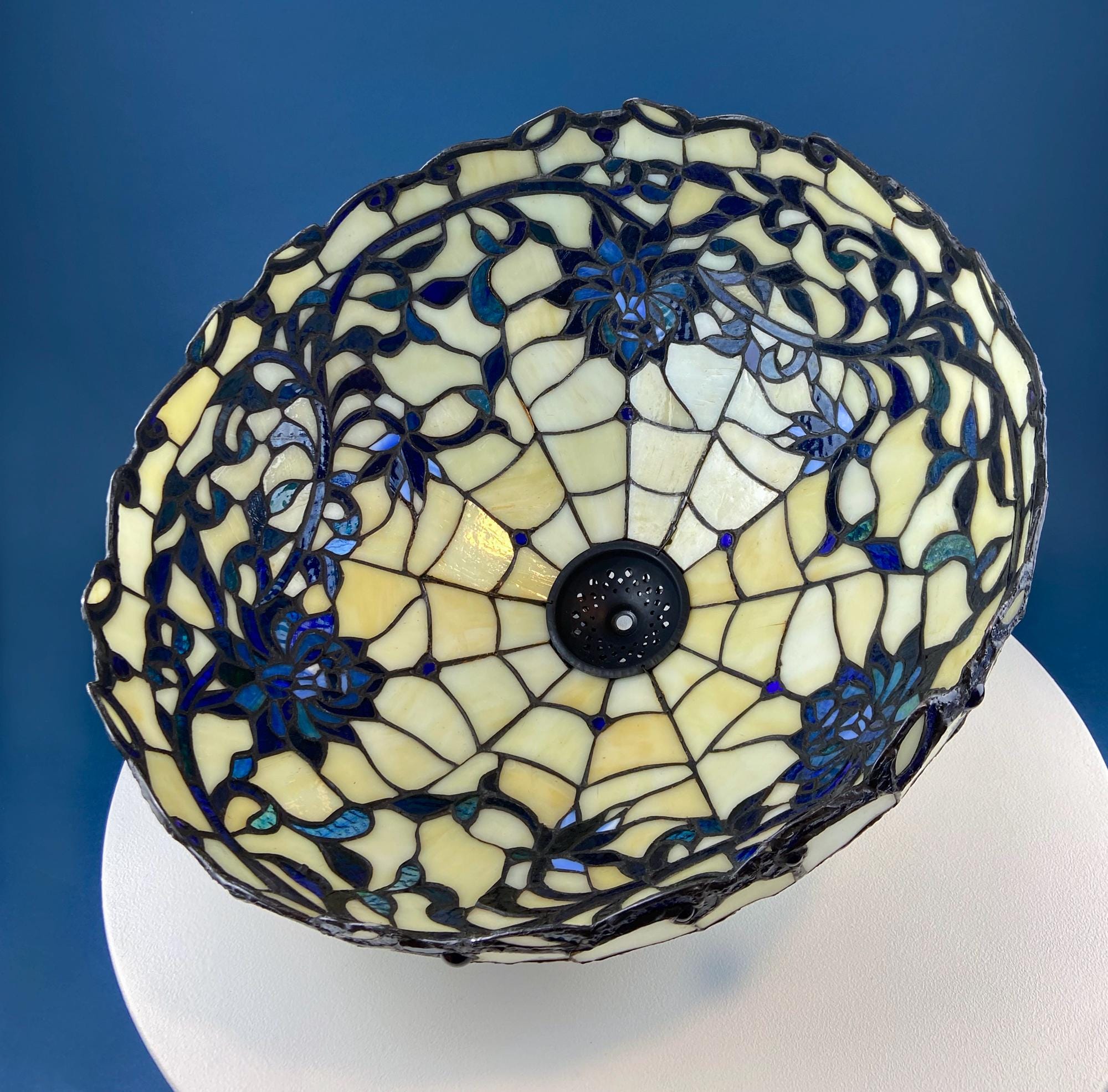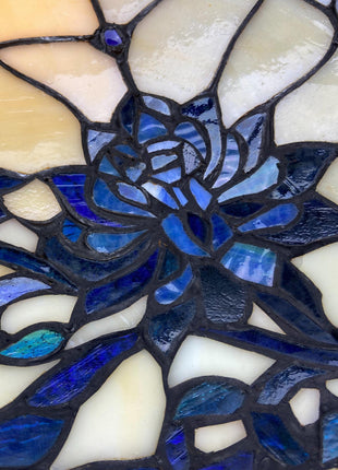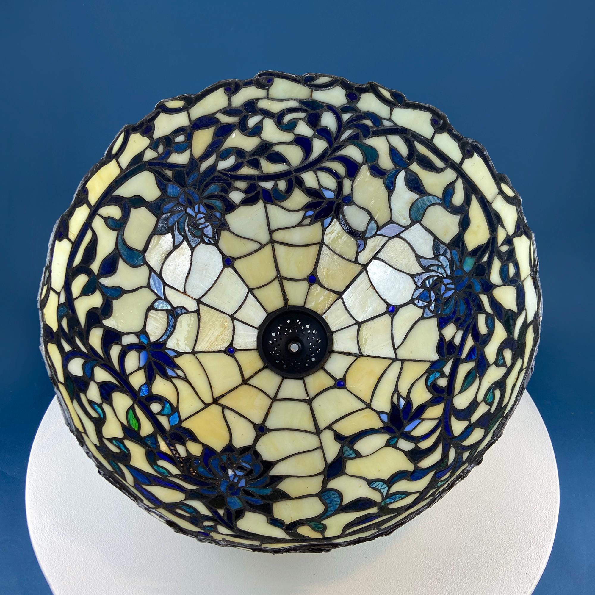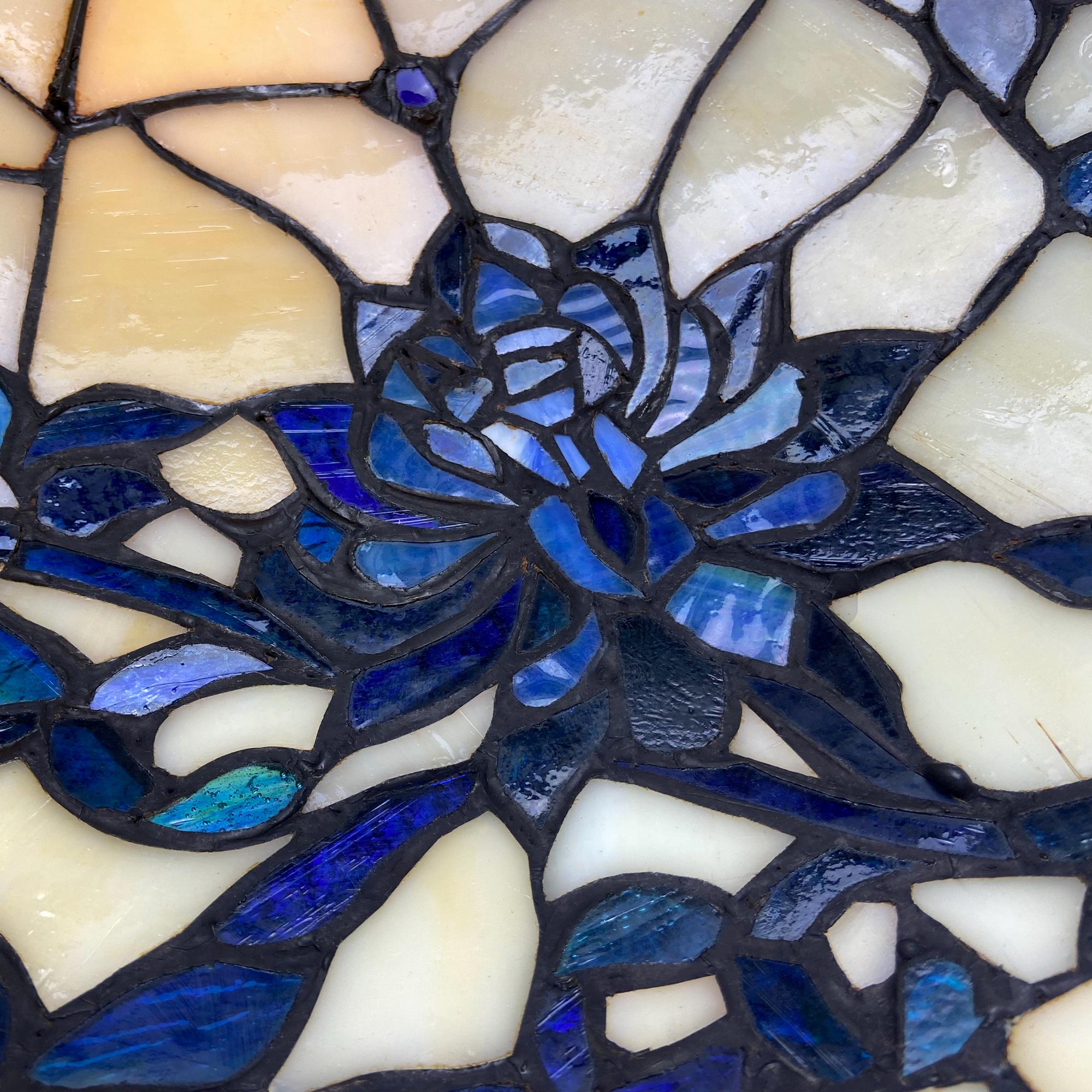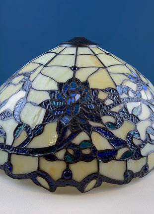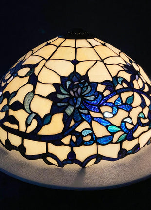 Vintage Tiffany Style Stained Glass Lamp Shade. Unusual Blue & Beige Floral Motif. For Standing, Table or Pendant Lamps. Classic Home Decor.