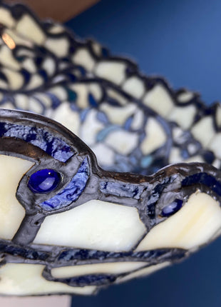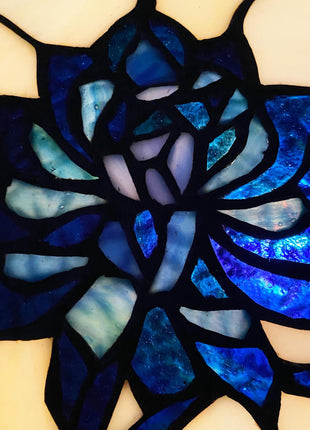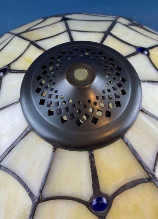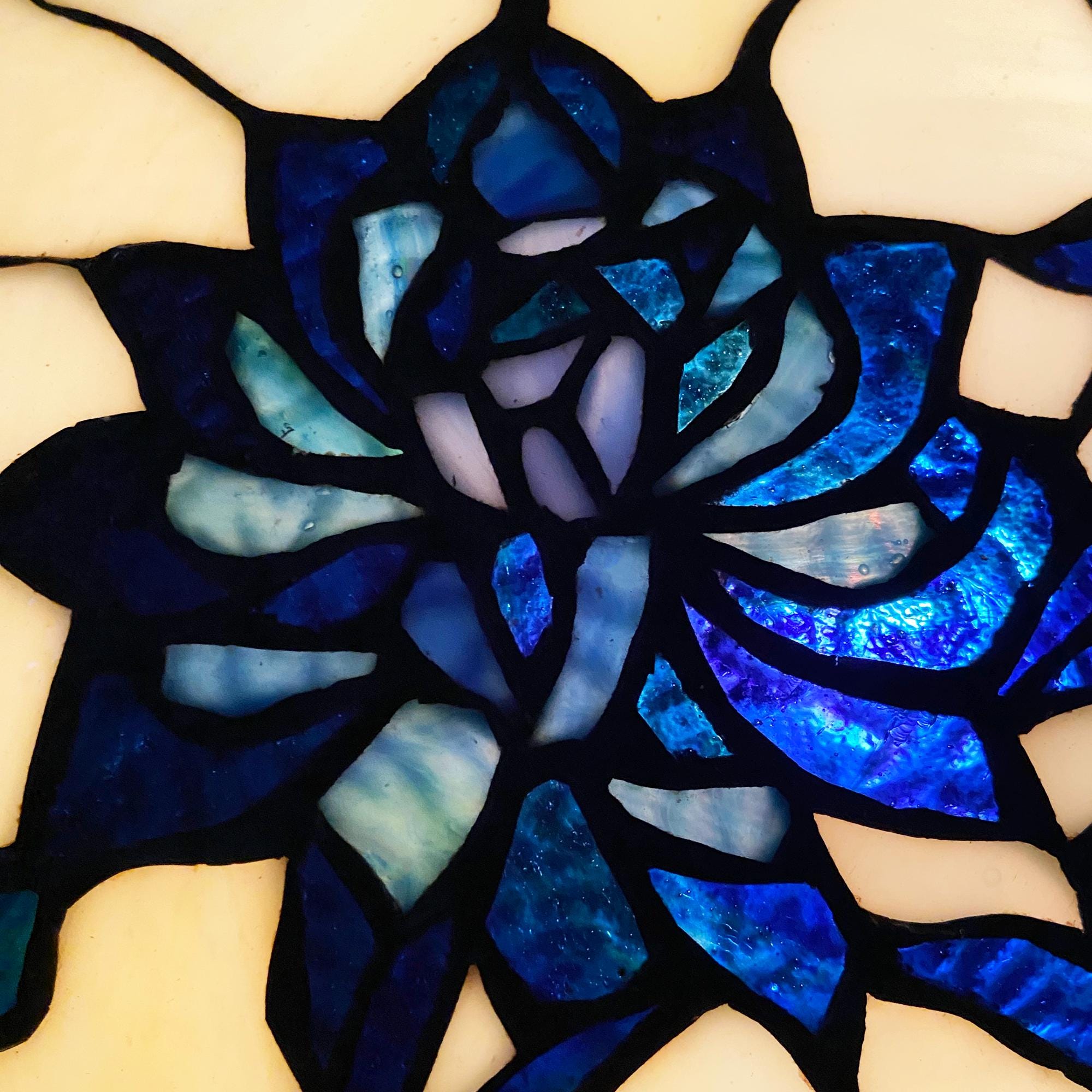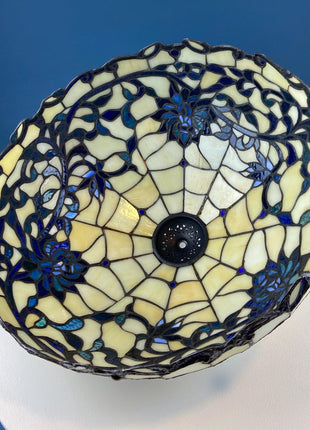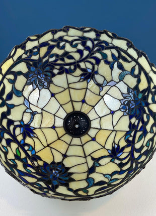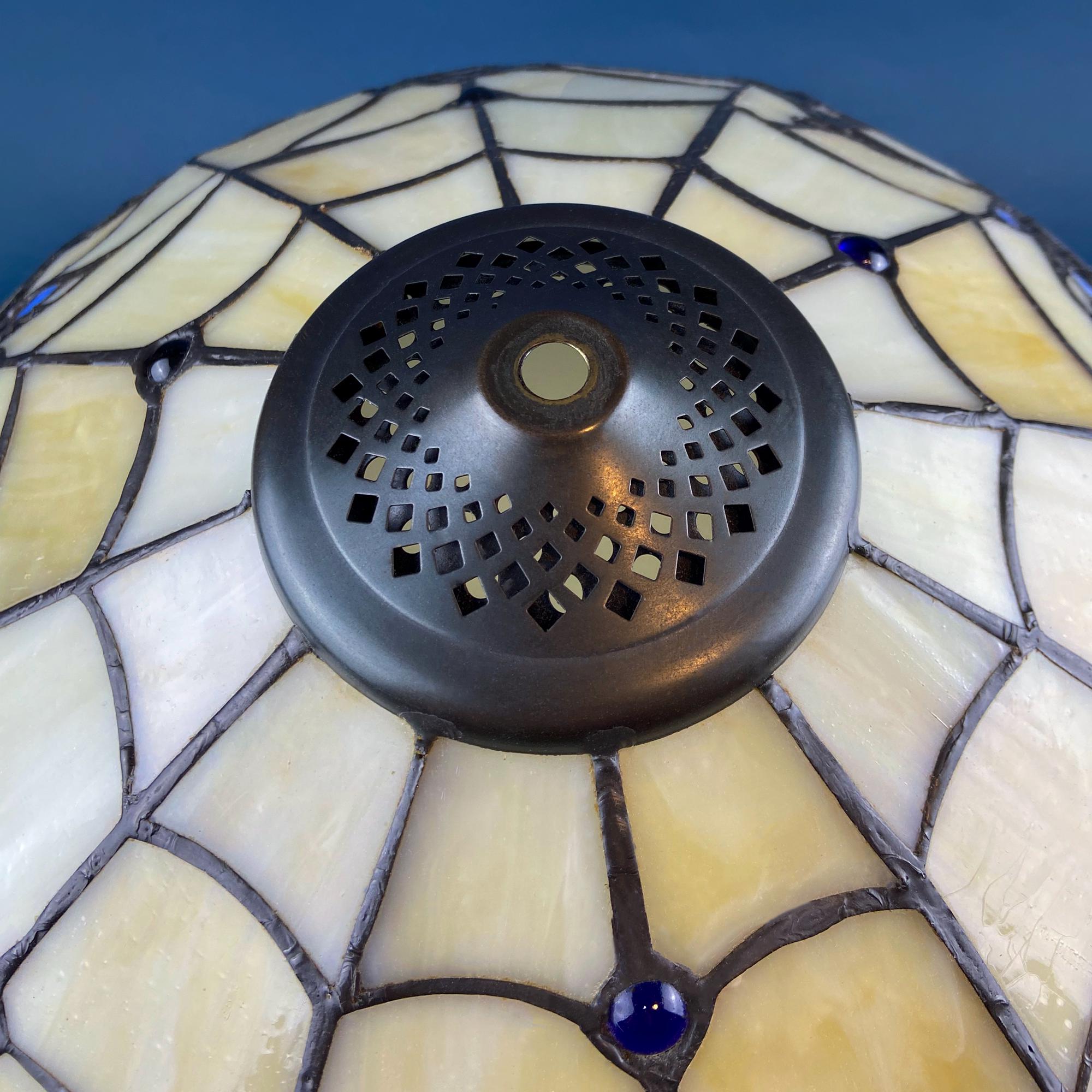 Vintage Tiffany Style Stained Glass Lamp Shade. Unusual Blue & Beige Floral Motif. For Standing, Table or Pendant Lamps. Classic Home Decor.