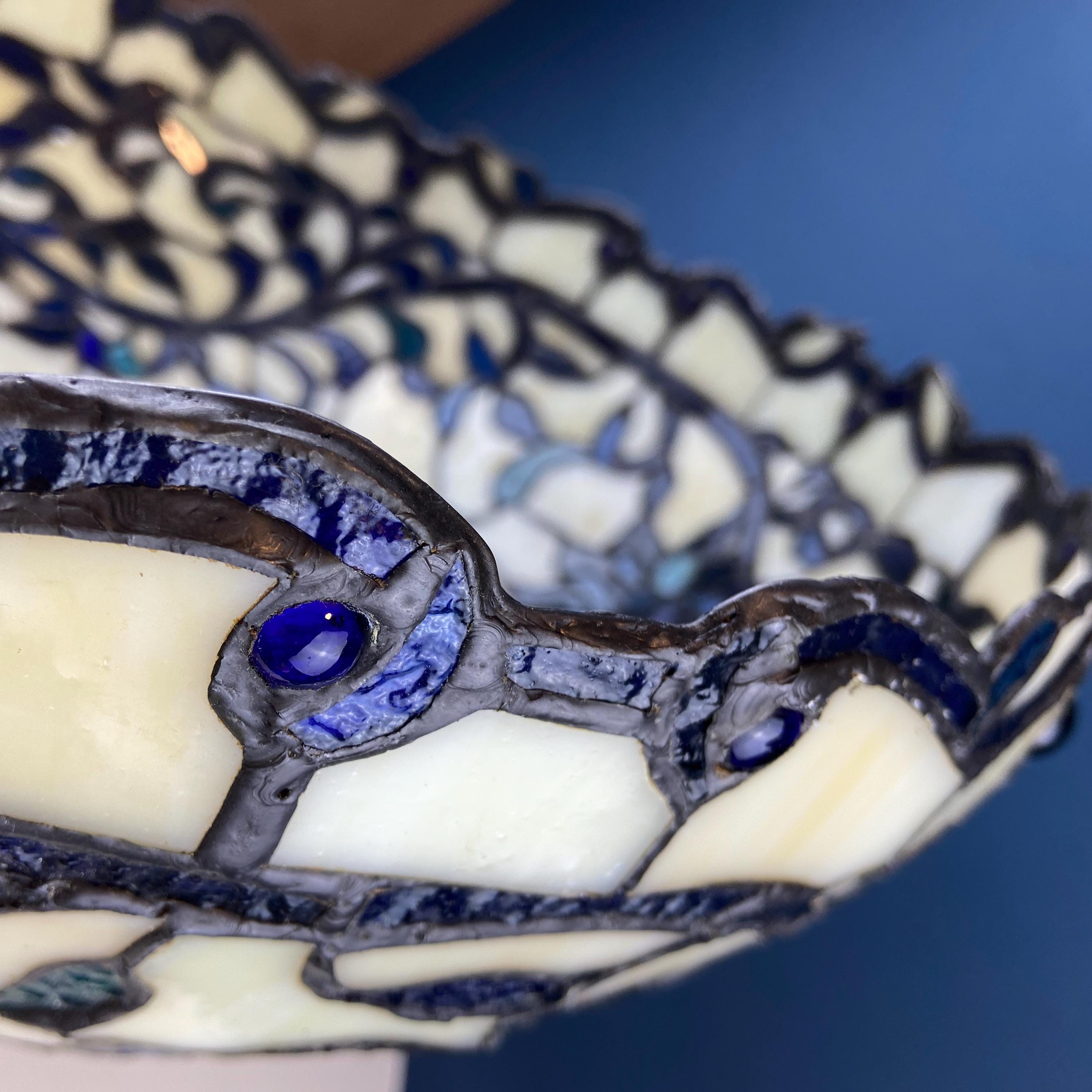 Vintage Tiffany Style Stained Glass Lamp Shade. Unusual Blue & Beige Floral Handmade Motif. For Use on Standing, Table or... Read More
