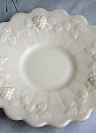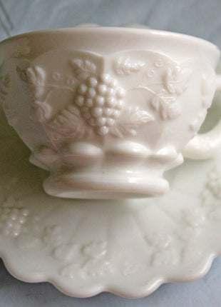 Westmoreland Milk Glass Tea Cups and Saucers Set. Three Tea Cups with Saucers with Embossed Grapes and Leaves. Paneled Grape... Read More