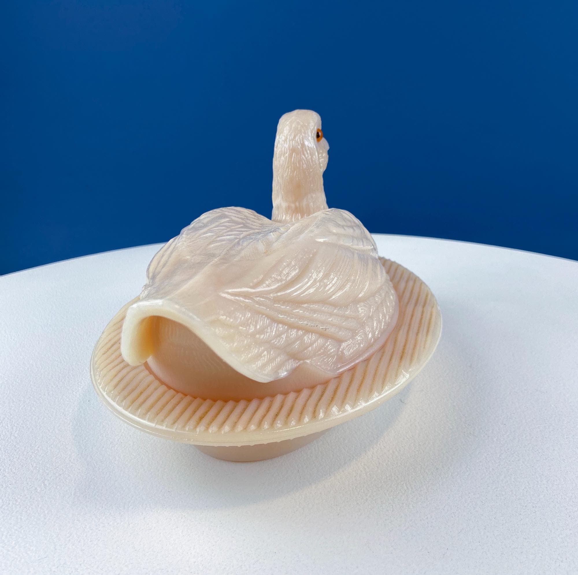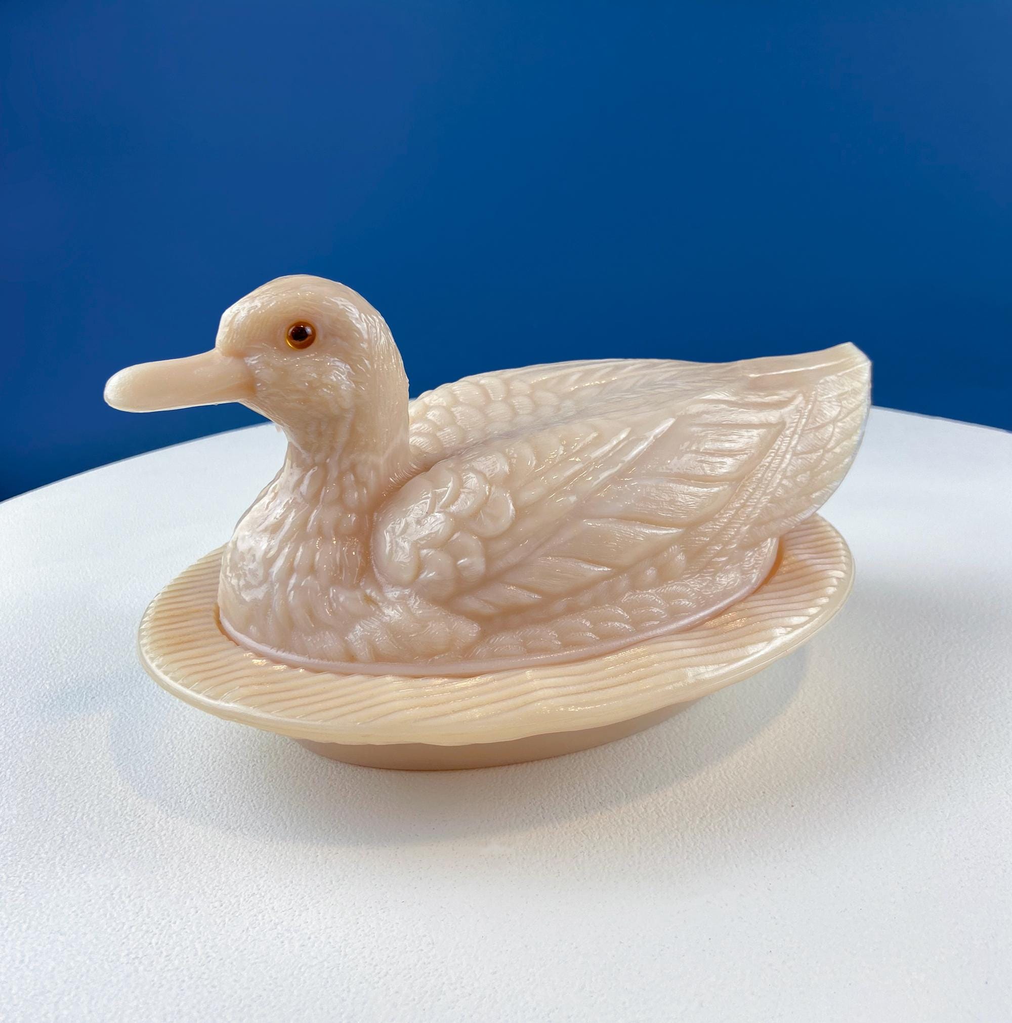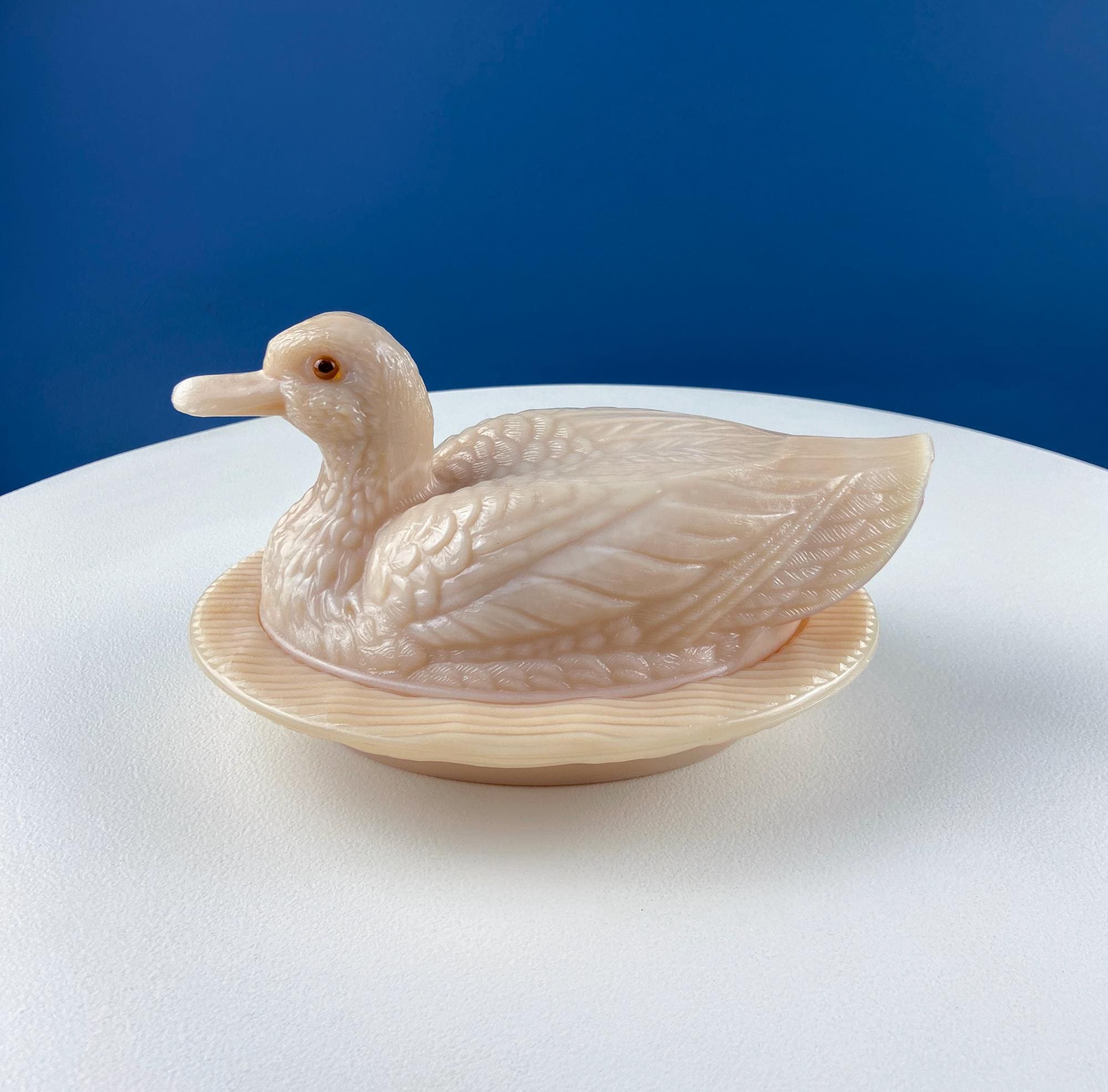 Westmoreland Peach Milk Glass Duck on Nest Dish. Serveware or Storage Bird Bowl for Candy, Trinkets, or Bathroom Accessories. Modern... Read More