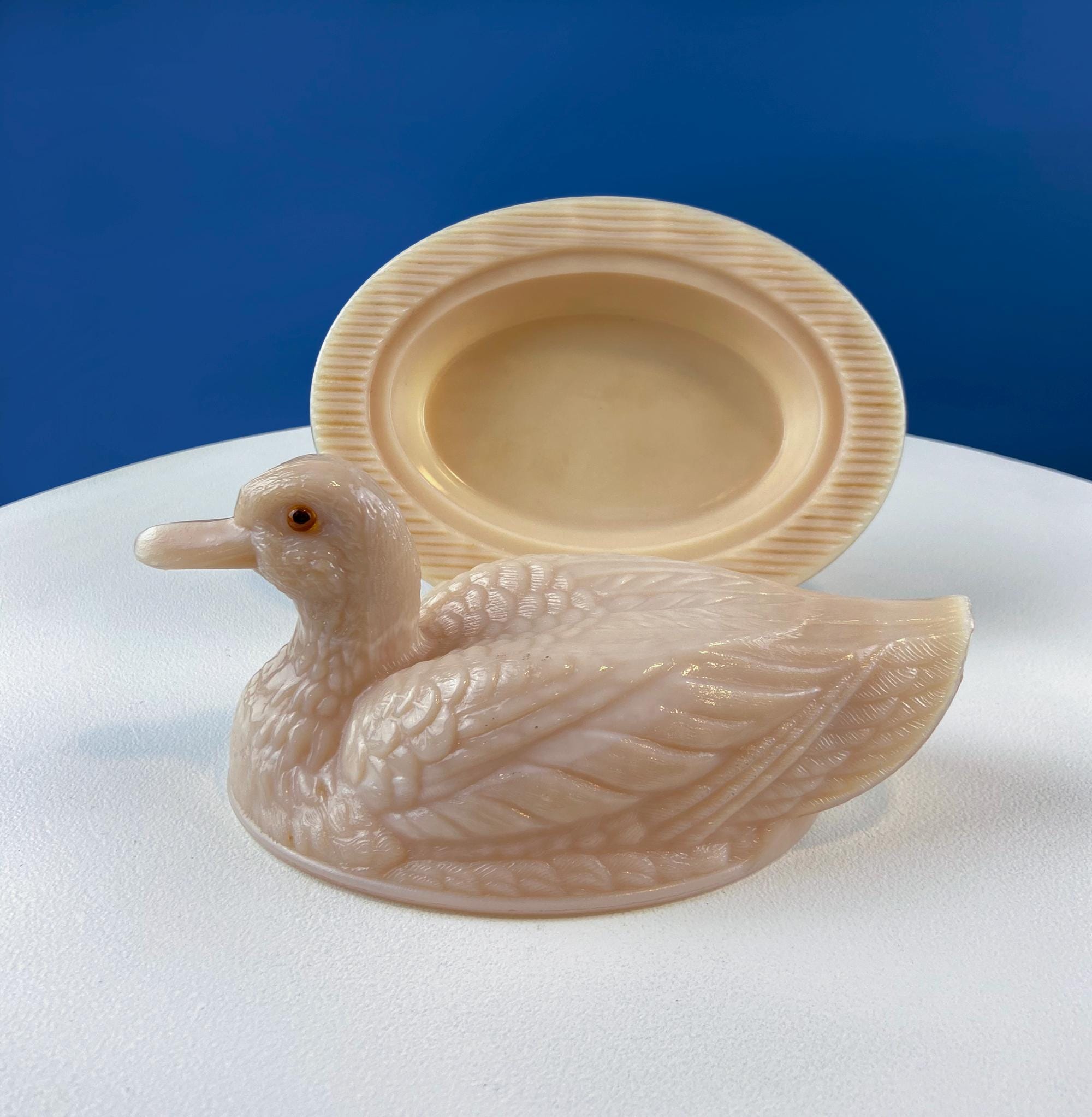 Rare Westmoreland Peach Milk Glass Duck Dish. Serveware or Storage Bird Bowl for Candy, Trinkets, or Bathroom Accessories. Modern Farmhouse.