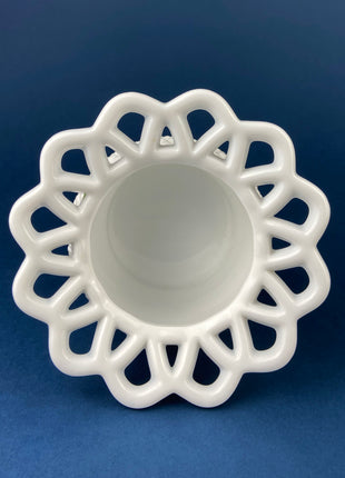 Westmoreland Vase with Reticulated Edge. Milk Glass with Waffle Texture and Ornate Rim. Flower Vase or Serving Dish.