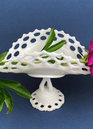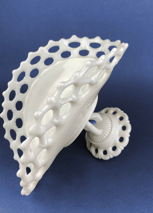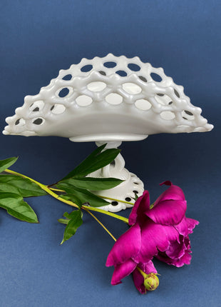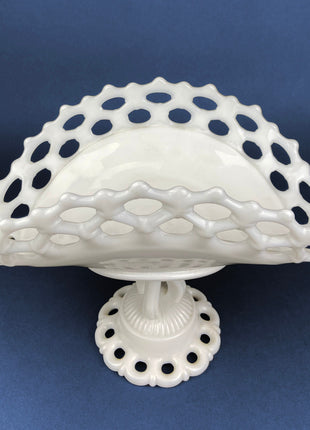 Banana Bowl. Westmoreland Vintage Milk Glass Pedestal Bowl. Reticulated Edge and Doric Stand. Table Centerpiece.