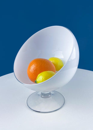 White & Clear Glass Tilted Footed Bowl. Rare Modern Hand Blown Serving, Candy Dish. Modern Home Decor. Interior Design Ideas.... Read More