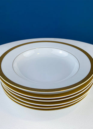 White & Gold Dish Set. Wedding Band China. Sango Spun Gold. Dinner, Salad or Dessert, Soup Plates, Sugar Bowl, Serving Dishes.