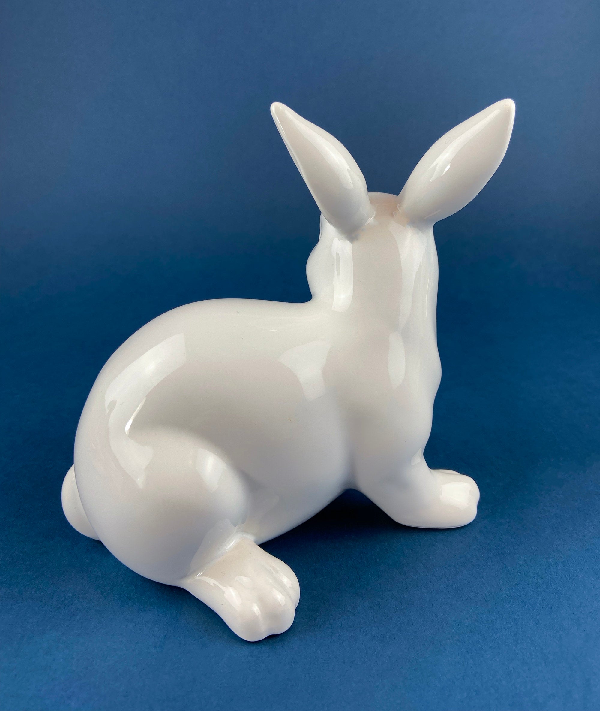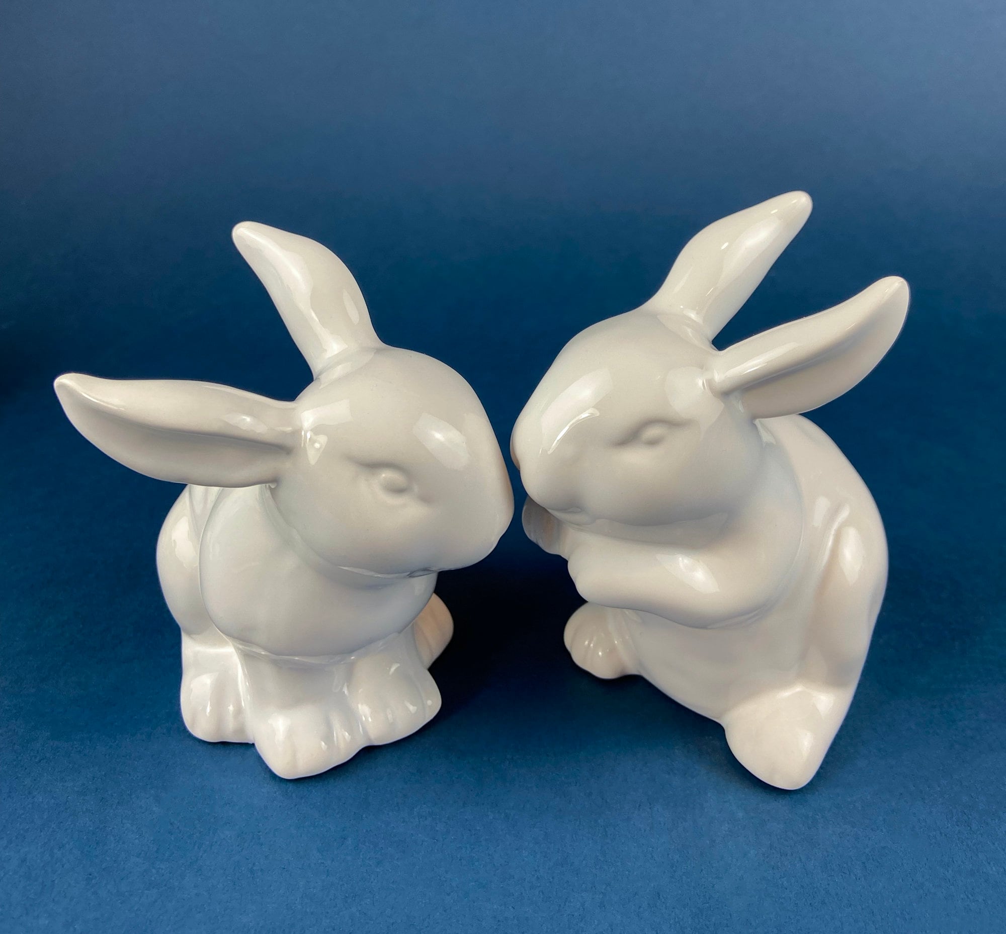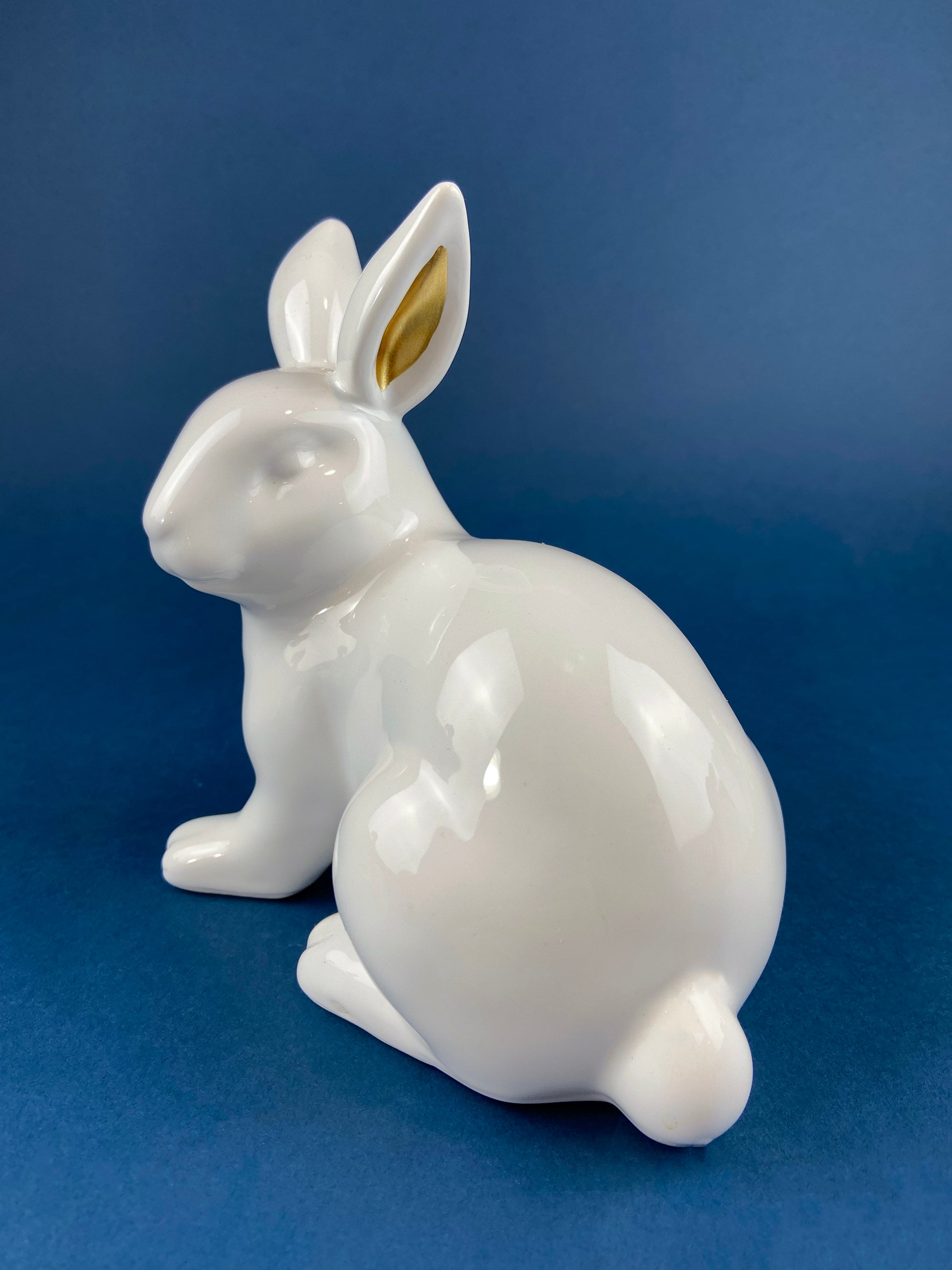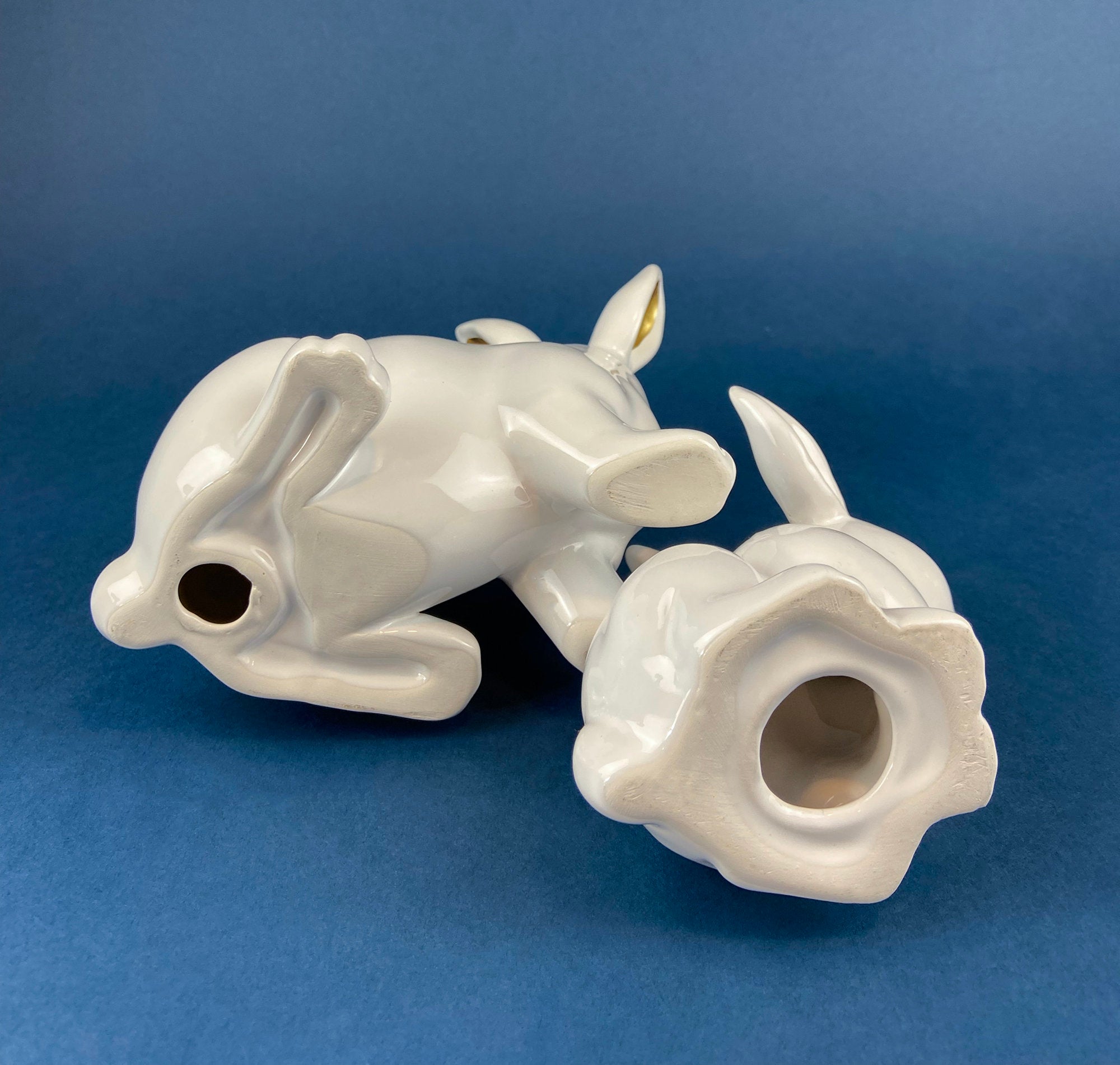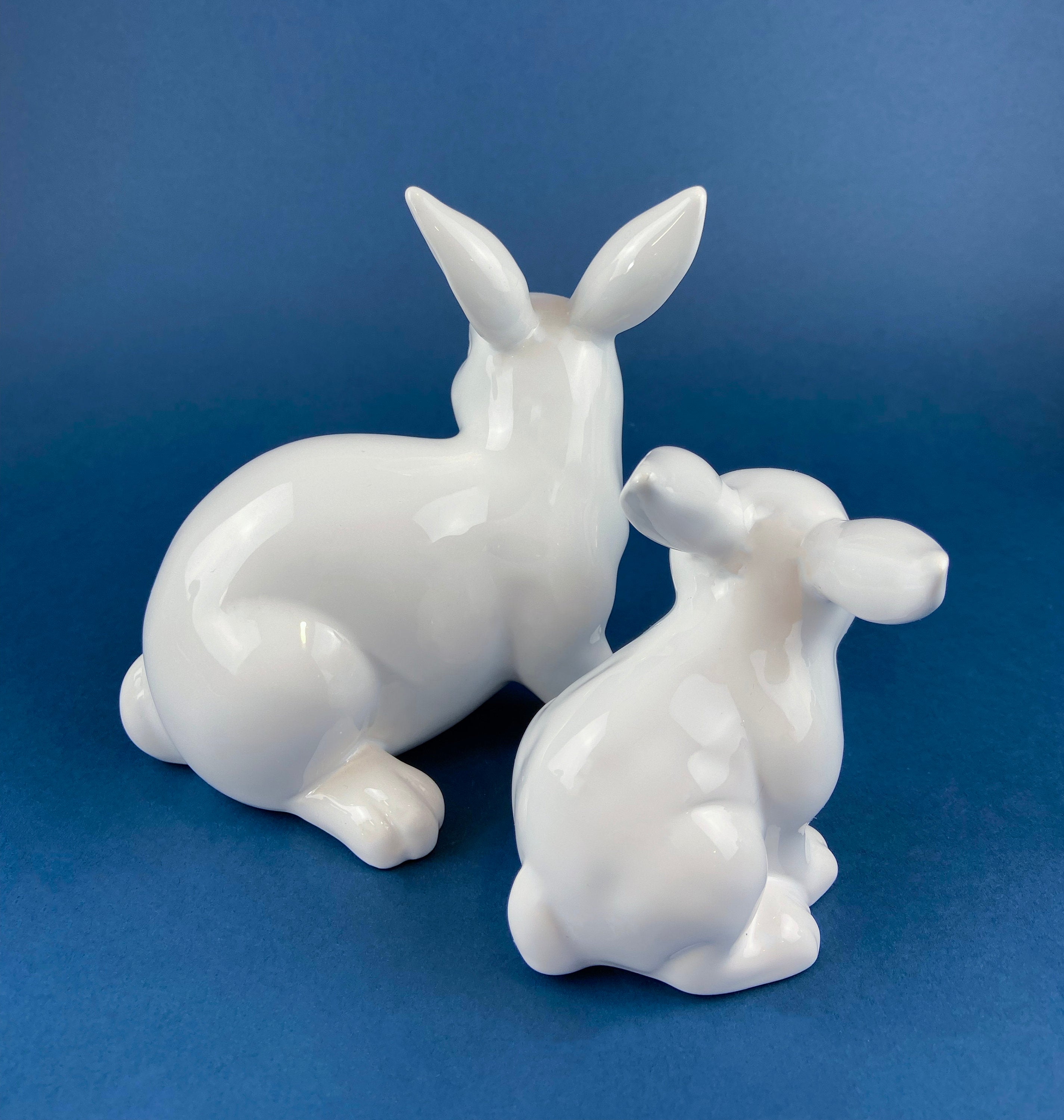 White Porcelain, Minimal Bunnies. Mom Rabbit with Two Babies. Bunny Family. Set of Three Figurines. Mom has Gold Lined Ears.... Read More